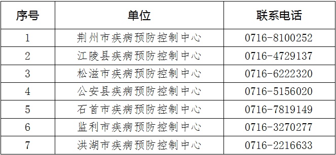 附:荆州市各疾控中心咨询热线