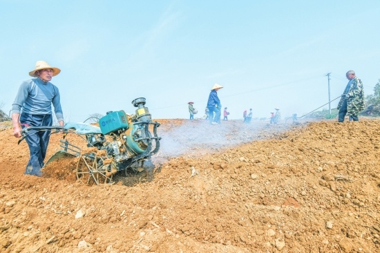 日前,荆州区八岭山镇马跑泉村抢抓晴好天气,全力播种半夏。近年来,马跑泉村依托当地资源优势发展半夏产业,助力产业振兴。(梅闻孙杨孟雨摄)