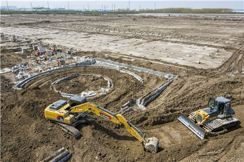 目前,该产业园项目桩基工程已完工,现正在全力冲刺完成地面基础施工,本周将开始主体钢结构的安装。(潘路张梦瑶摄)