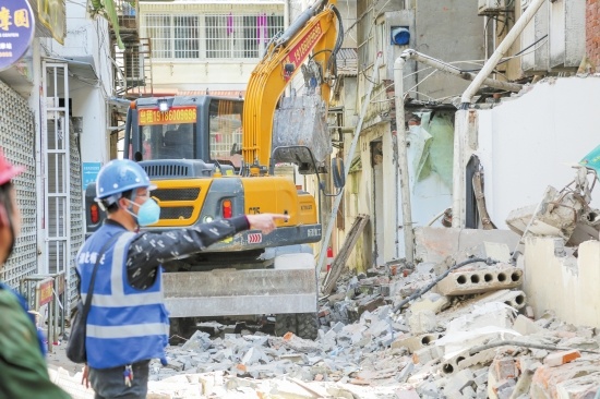 3月29日,沙市区胜利街道组织人员对红门路老八栋片区违章建筑进行集中拆除。