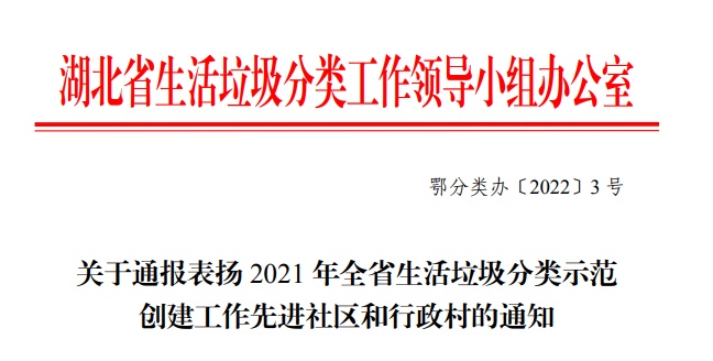 记者从荆州市城市管理执法委员会获悉,湖北省生活垃圾分类工作领导小组办公室日前下发通知,通报表扬2021年全省生活垃圾分类示范创建工作先进社区和行政村。