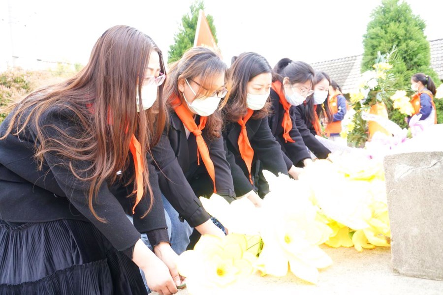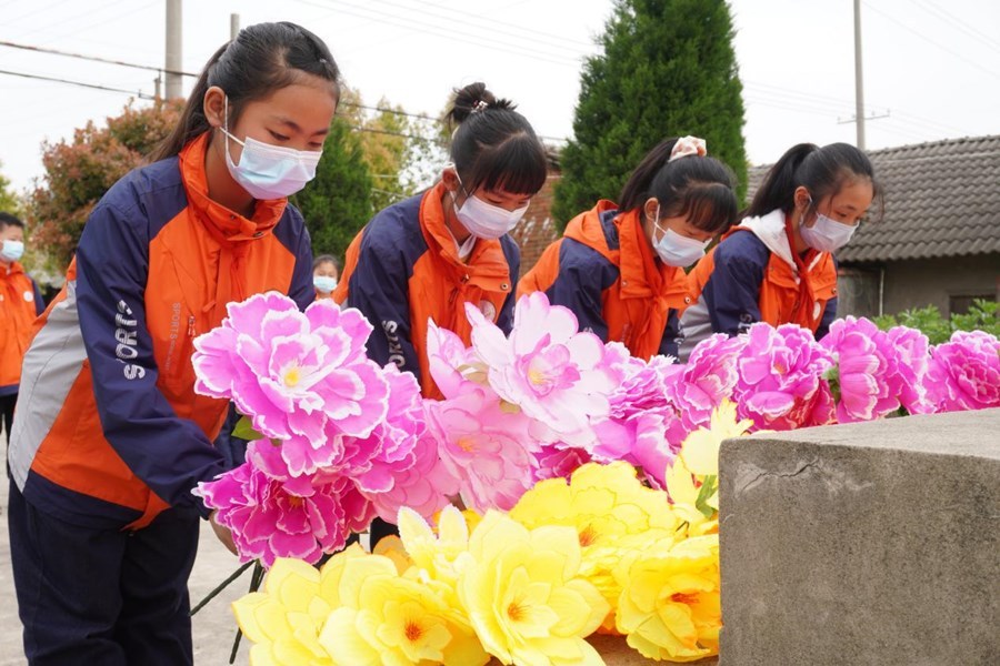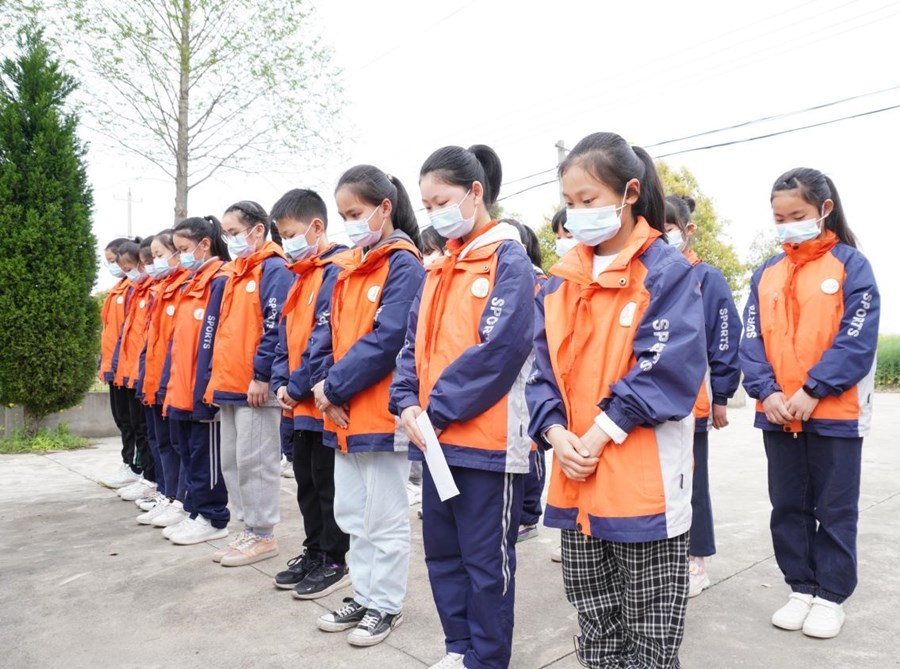 活动现场,全体人员整齐排列在纪念碑前,向革命烈士默哀,敬献花篮,深切缅怀先烈,寄托无限哀思。全体党员、团员、少先队员分别面向党旗、团旗、队旗庄严宣誓,追忆革命先烈英勇事迹,重温誓词并向革命英雄敬献鲜花。