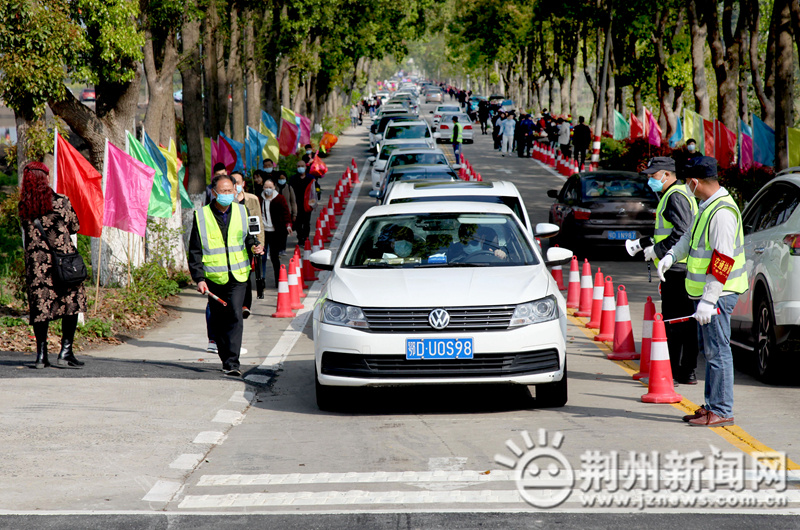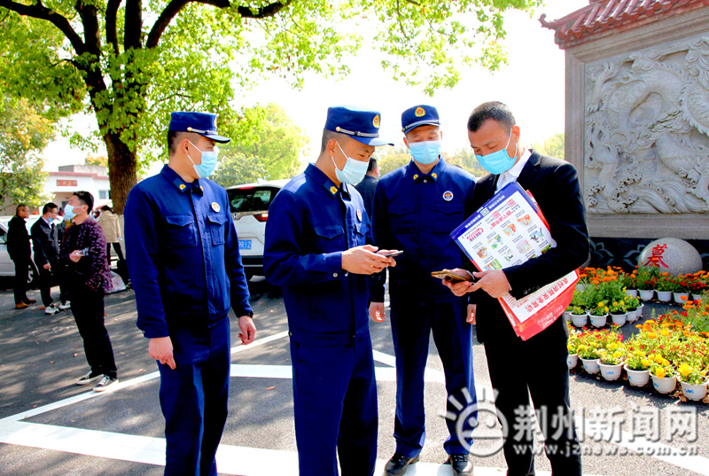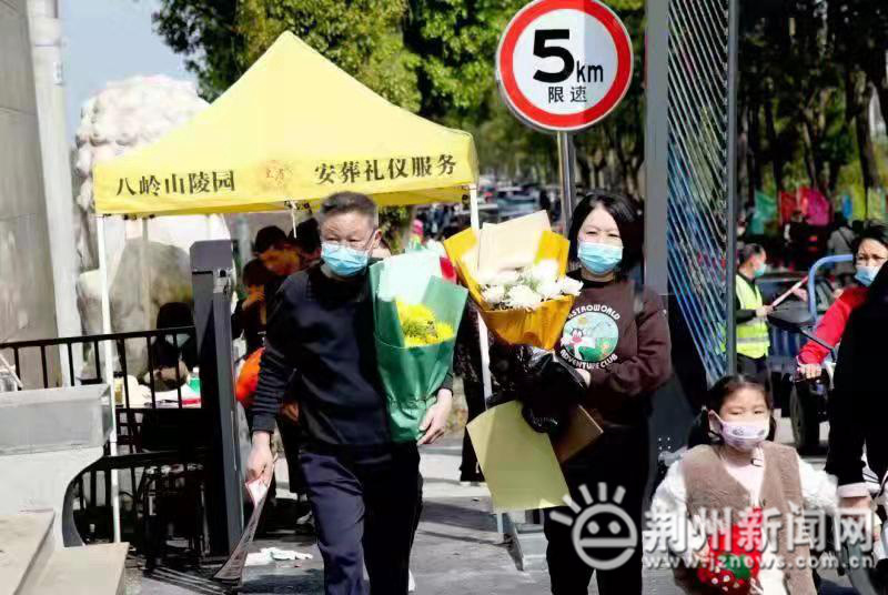 “请出示一下健康码、行程码,请戴好口罩……”公墓陵园出入口,荆州市殡仪馆工作人员同公墓陵园相关负责人组成专班,查验市民健康码和行程码,检查外省来荆祭扫人员是否携带48小时核酸证明。