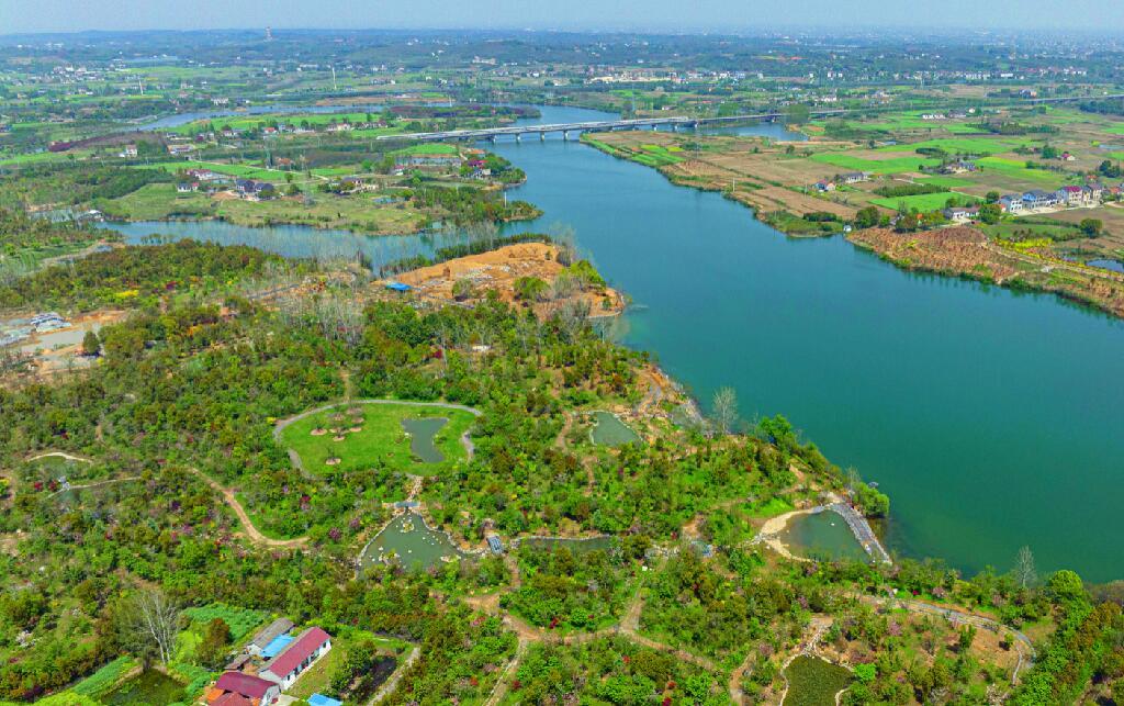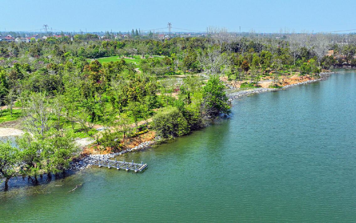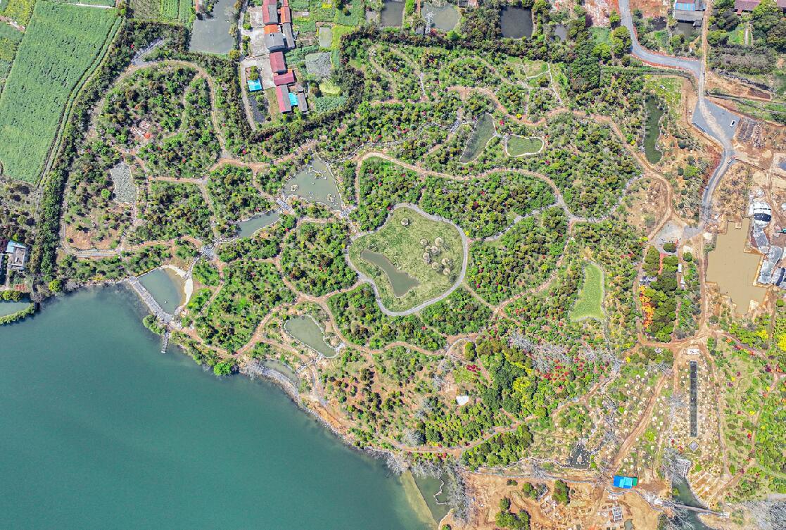 日前,无人机鸟瞰正在建设中的浅山湖樱森林公园,整个园区结构布局已初见雏形,各类植被生机勃勃,风景美不胜收。