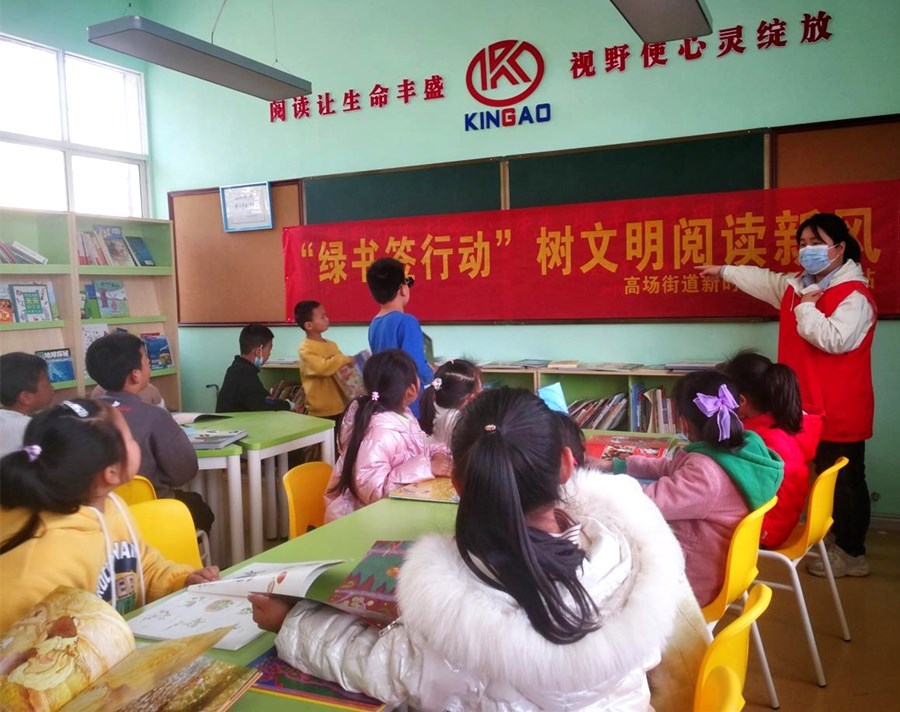 在湖北金虹希望小学阅读室,高场街道新时代文明实践志愿者通过给小朋友阅读正版书籍和讲解“绿书签”活动的来源和含义,教导小朋友要阅读正版书籍,抵制盗版书籍,在日常生活学习中做到文明上网,不浏览非法网站、盗版图书网站。