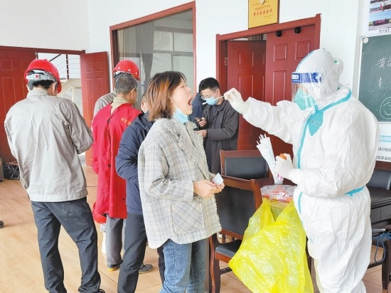 为守护职工生命健康、保障企业安全生产,熊河镇卫生院核酸采样工作人员到辖区内企业所在地,对湖北天天旺农业发展股份有限公司、江陵县福帆新型建材有限公司的66名职工进行核酸检测。