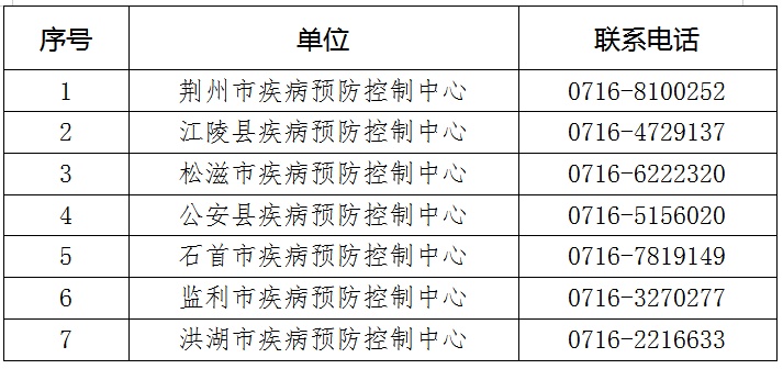 附:荆州市各疾控中心咨询热线