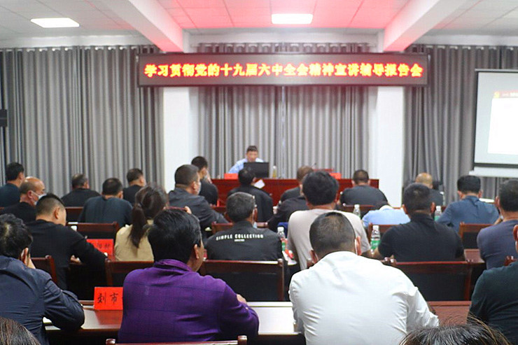 市委党校教研室主任周云峰以《以史为鉴定 开创未来 深入学习贯彻党的十九届六中全会精神》为题,从党的十九届六中全会的基本概况、重点内容、实践启示等方面进行了全面详细的阐述讲解。报告视野开阔、内涵丰富,时间上跨越百年、空间上纵贯中外、理论上递进飞跃、思想上推陈出新,具有很强的政治性、理论性、指导性、系统性。