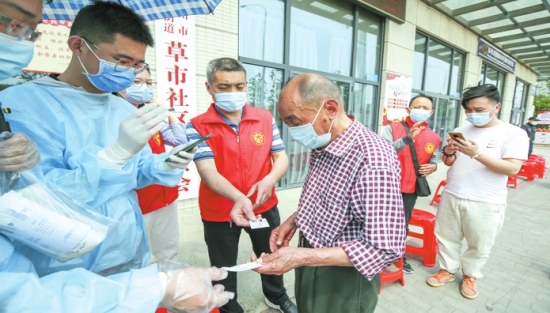 王俊辉是市中级人民法院一名法官助理。当日下午,看到社区微信群发出“动员干部当核酸检测志愿者”的通知后,他立刻报名,下班后便赶到采样现场报到。