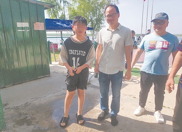 夏朝庆赶紧拉住小文的手,并将游泳圈递给他,让小文趴在游泳圈上,他在身后使劲推小文靠岸。