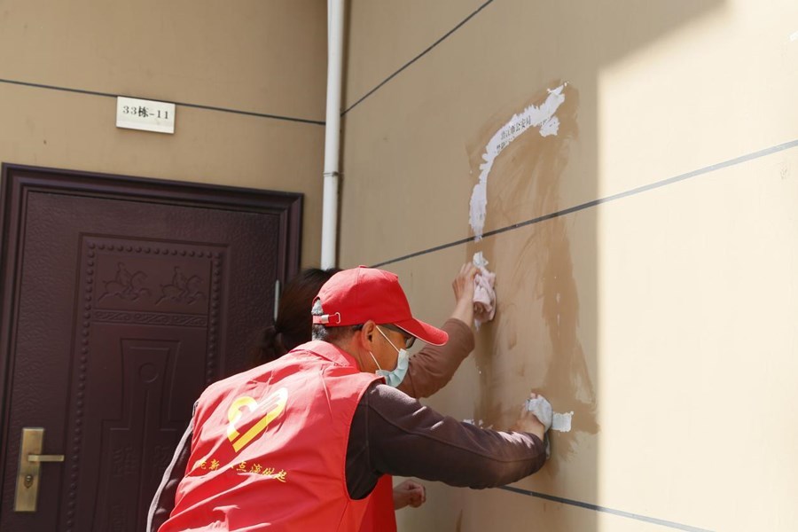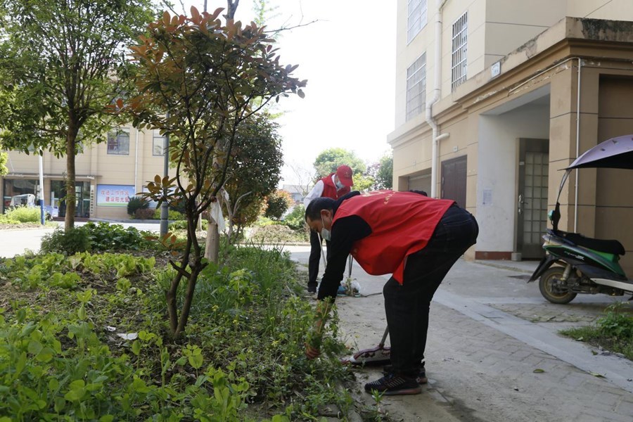 捡垃圾、铲广告、除杂草……4月11日清晨,在老新社区,身穿红马甲的社区工作人员、志愿者们拿着铲子、扫帚、钳子等工具认真劳作,默默地清理、美化着这座城镇。