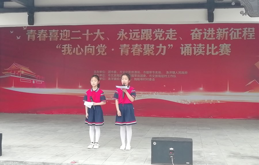 潜江新闻网讯(记者 王宇杰)为进一步激发广大青年的责任感和使命感,增加团组织的凝聚力,坚定理想信念,传承红色基因,4月23日,“我心向党·青春聚力”迎“五四”诵读比赛在渔洋镇拖船埠村举行。渔洋镇人民政府、渔洋镇综合文化站、拖船埠中心小学、渔洋小学、渔洋中学、市烟草专卖局、市文化和旅游局等单位参加比赛。