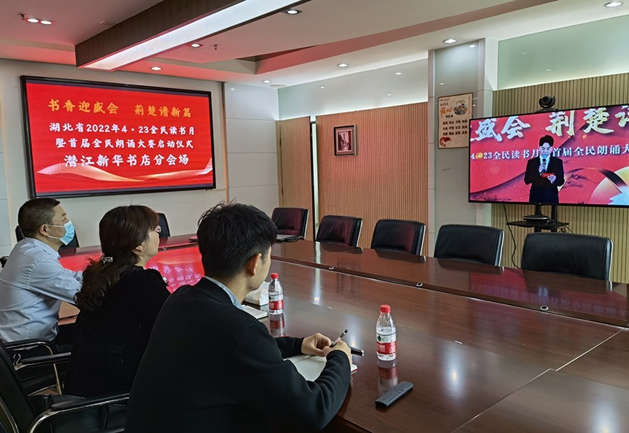 潜江新闻网讯(记者 曹以成)4月23日上午,“书香迎盛会 荆楚谱新篇”湖北省2022年4·23全民读书月暨首届全民朗诵大赛正式启动,我市在潜江新华书店(分会场)参加线上启动仪式。
