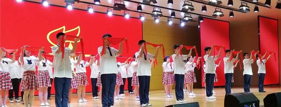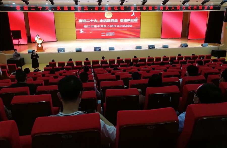 潜江新闻网讯(记者 王宇杰)为加强青少年思想政治引领和仪式教育,凝聚团组织活力,4月25日,由团市委、市教育局主办的“喜迎二十大、永远跟党走、奋进新征程”潜江市集中离队入团仪式示范活动在曹禺中学泰丰校区举行。市教育局、团市委相关负责人,曹禺中学少先队员代表,曹禺中学新、老团员代表参加活动。