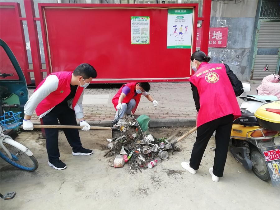 活动通过“点面结合、示范带动、先易后难、整体推进”的原则,按照“党员干部带头、志愿者发力、群众参与”的工作模式,聚焦重点部位、重点地段、重点小区,强化整治措施。志愿者们充分发挥不怕脏、不怕累的精神,齐心协力对辖区主次干道零落的纸片、枯树枝、塑料袋、堆积垃圾等进行清理;对背街小巷的小广告发现一处,清理一处;重点对居民各自门前及排水沟内的垃圾和“三堆”进行彻底的清扫和转运,为居民营造舒适宜居的生活环境。