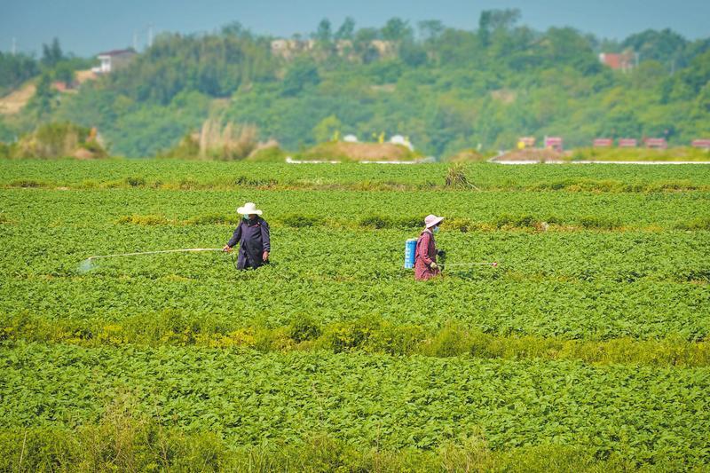 连日来,广水市李店镇张杨村菜农狠抓优质土豆田间管理保丰收。 (随州日报全媒记者李文军摄)