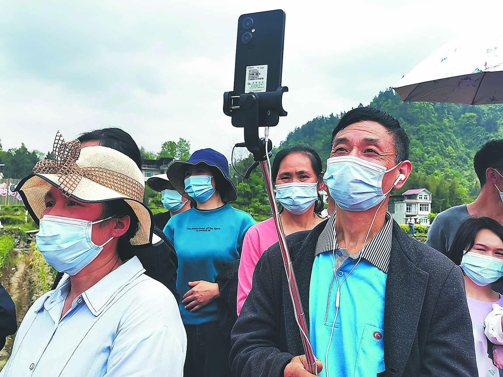 当地群众直播现场盛况。(全媒体记者 秦卫飞 摄)