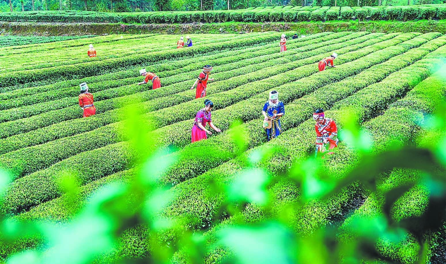 当地茶农身着节日的盛装,展现采茶技艺。 (恩施日报报恩施图片库 陈 卓 摄)