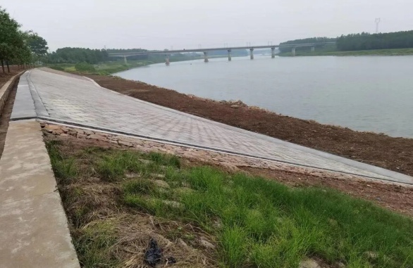 老山咀崩岸整险工程现场,此前发生崩岸险情的部位已经全部加固完成。据石首市堤防管理总段相关负责人介绍,老山咀崩岸整险加固工程包含削坡土方2800立方米,砼六方块护坡2200平方米,砂石垫层200立方米,浆砌石脚槽120立方米,截流沟、排水沟160米,以及其他相关项目。