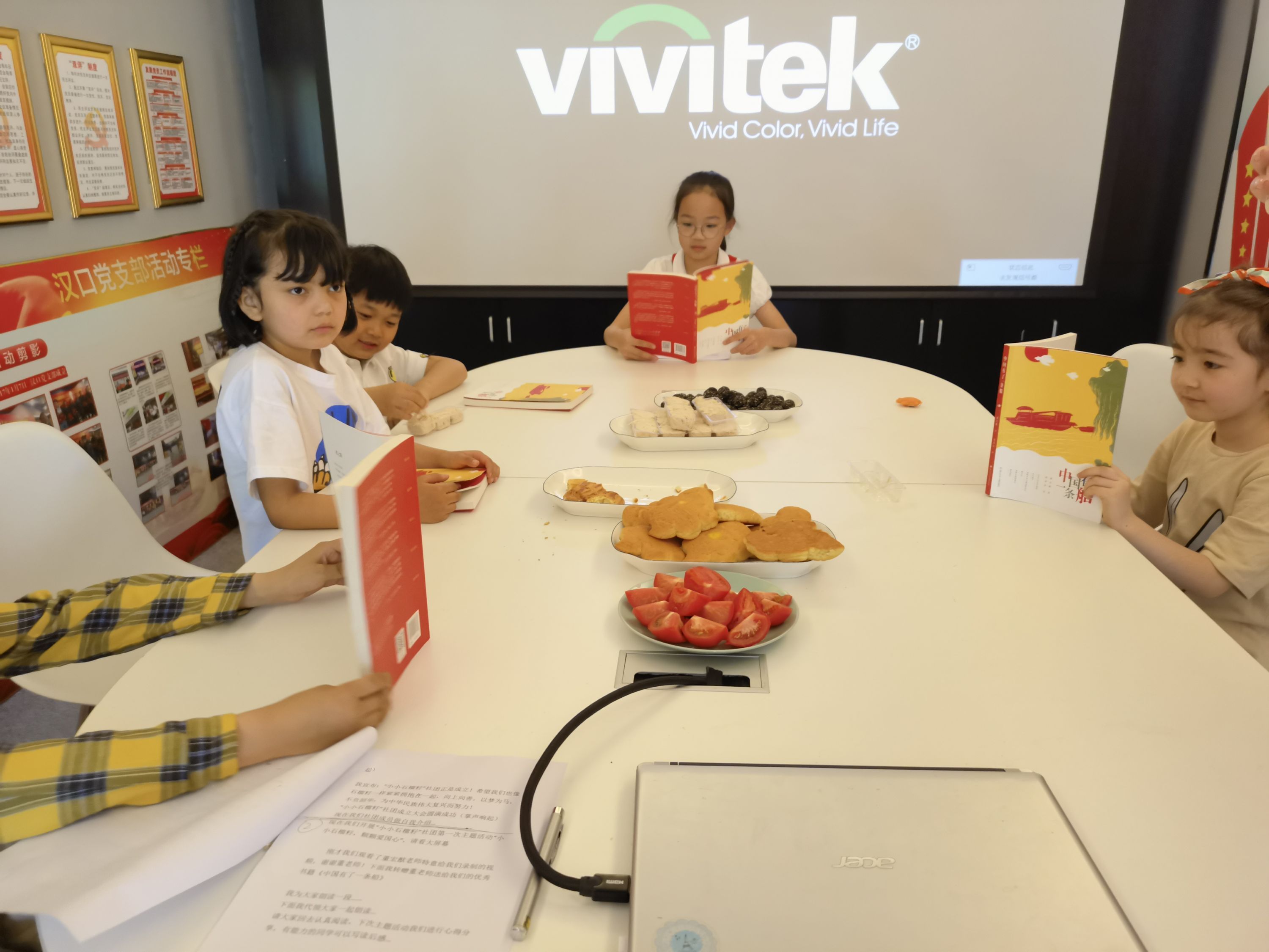 小朋友们品读儿童红色读物《中国有了一条船》。