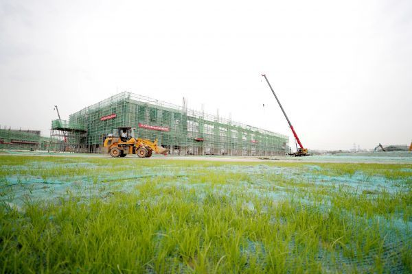19号线花山车辆段位于花山大道、武黄城际铁路和武九铁路的西北区域,占地面积约28公顷。走进施工现场,只见大片绿植迎风摇曳,大面积空地种植黑麦草,路边种上小雏菊,与传统工地给人的印象不太一样。