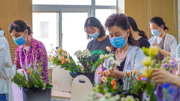 社区代表现场插花。肖茗予 摄