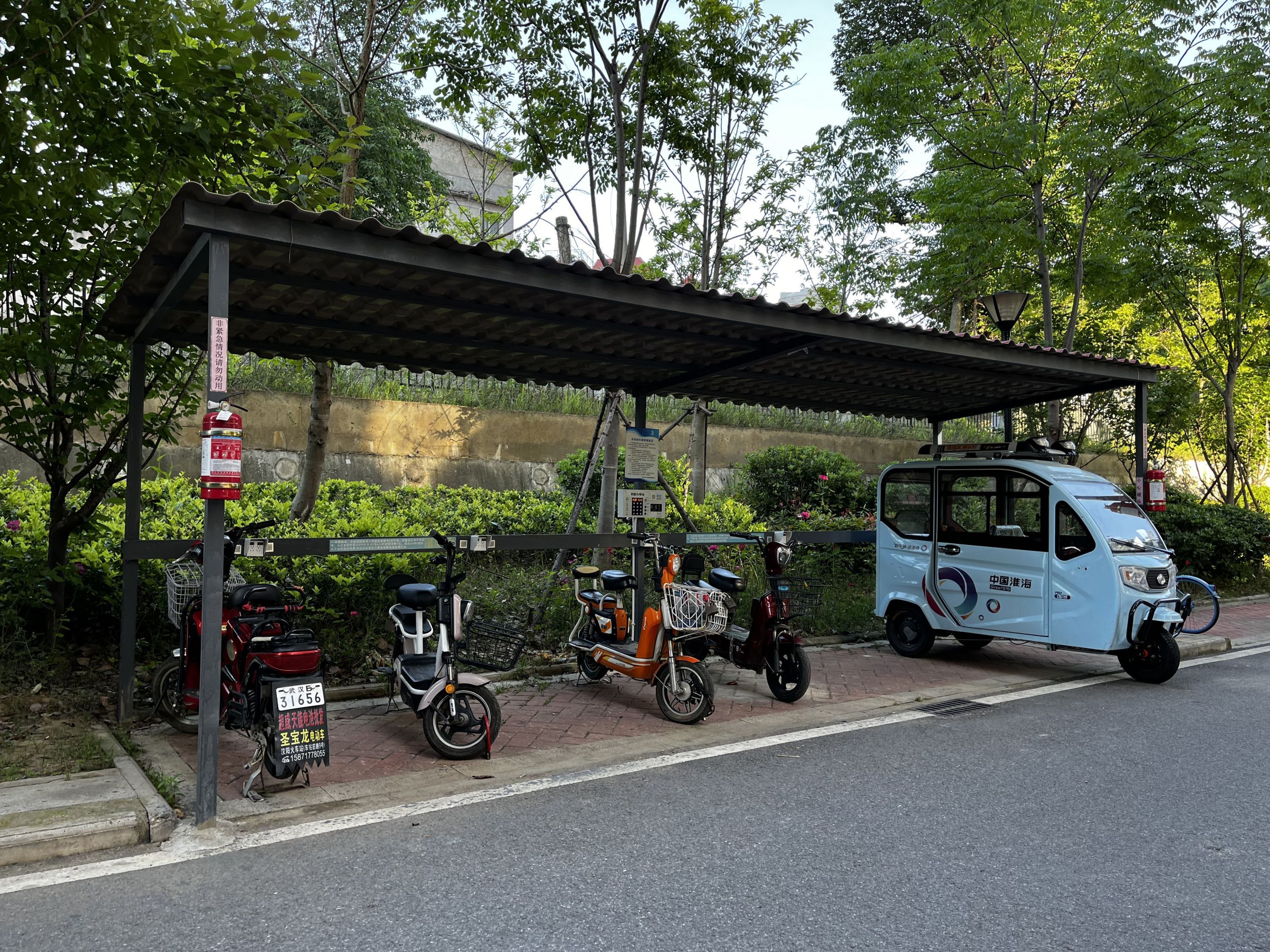 新增的车棚停放有序,显眼处均有消防设施。长江日报记者秦璟 摄