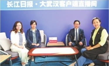 江岸区教育局副局长王盛莉(左二)一行做客长江日报“思政教育局长谈”。