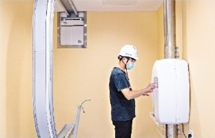 一名工作人员测试光谷同济儿童医院轨道物流系统。作为武汉市第一家准备投入使用的轨道物流系统,将大大降低医务人员运送药品的压力,提高医院的运行效率。