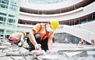 武汉梦时代广场项目,工人正在打磨地砖。