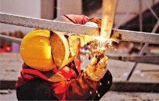 武汉梦时代广场项目,一名工人正在焊接作业。