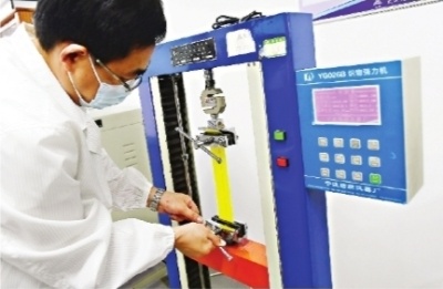 技术人员在对面料进行试验。长江日报记者史伟 摄