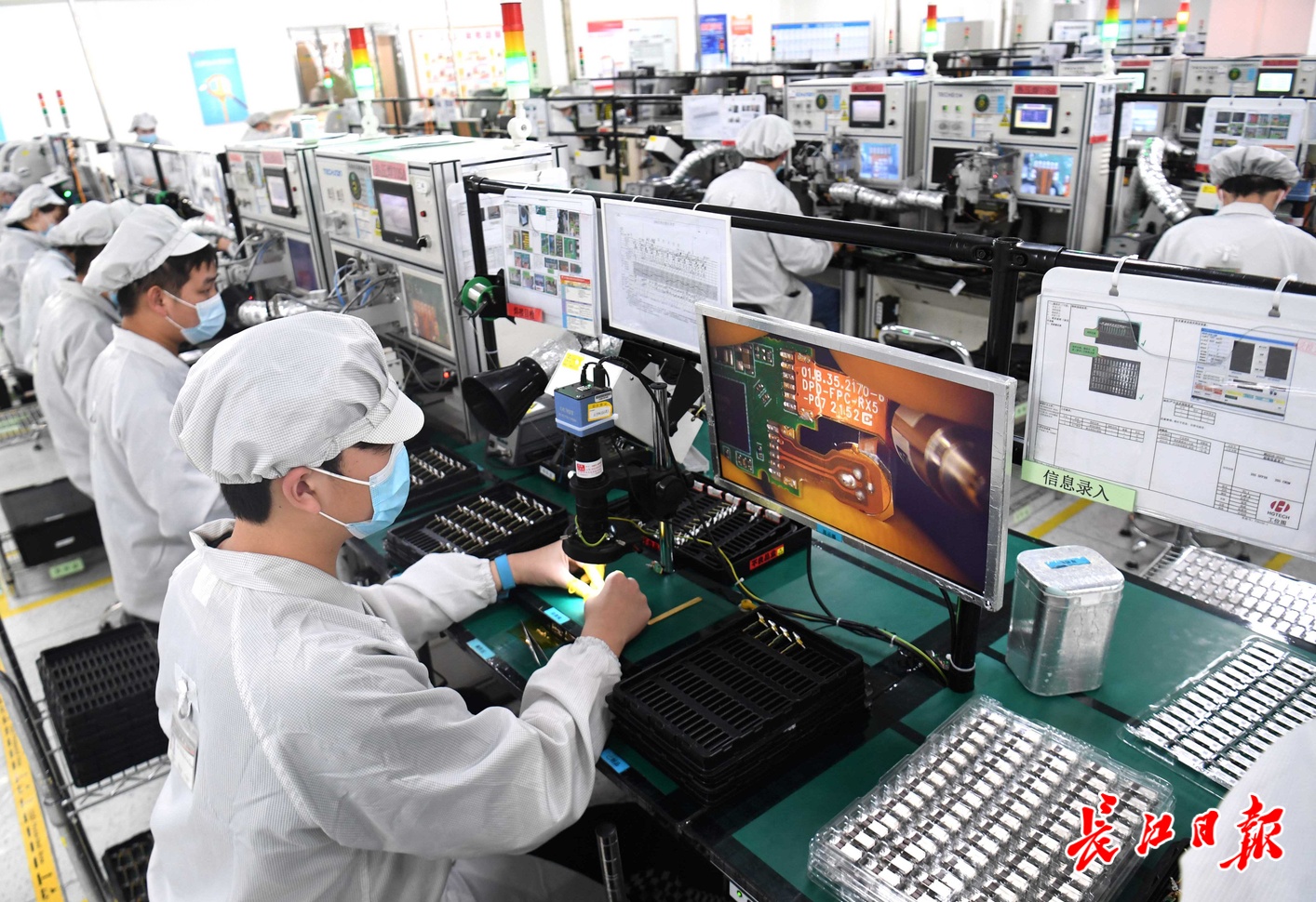 华工科技旗下的华工正源5G光模块车间一派繁忙。记者高勇 摄