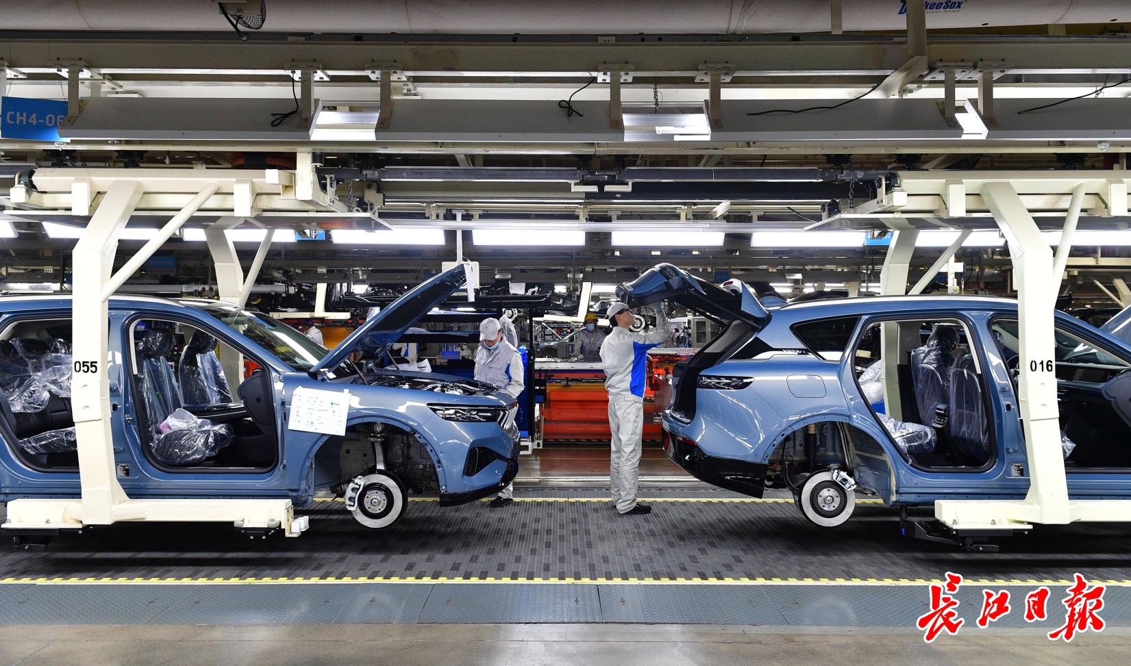 岚图汽车总装车间,工人正在组装车辆。记者李永刚 摄
