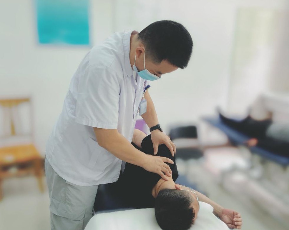 杨凯正在为患者进行关节松动、局部肌肉放松的手法治疗。