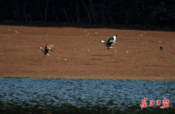 据我市著名的野生鸟类摄影师华力先生介绍:棉凫主要分布在长江中下游地区,在我国数量很少,被《中国濒危动物红皮书》列为稀有等级。棉凫常成对或成几只至二十多只的小群活动,性较温顺,善游泳,也善潜水,但一般很少潜水。通常多数时间都在水中生活,一般不上岸活动,但有时爬到突出于水面的物体上。当受惊时能立刻从水上冲出飞起,起飞既快而灵活,不断发出“咯咯咯”的叫声。通常不高飞,两翅煽动幅度小,飞行距离不大,但飞行速度较快。主要在白天活动,夜晚多栖息于湖中或树枝上。棉凫主要以水生植物和陆生植物的嫩芽、嫩叶、根等为食,也吃水生昆虫、蠕虫、蜗牛、软体动物、甲壳类和小鱼等。觅食活动在白天,常在水面和岸边浅水处觅食,很少潜水捕食。(长江日报记者金思柳 摄影报道)