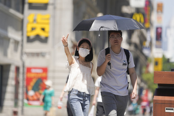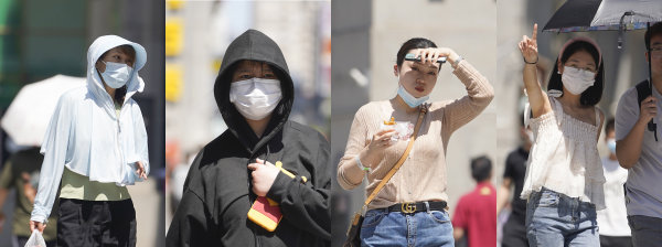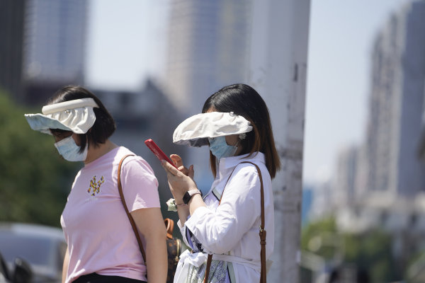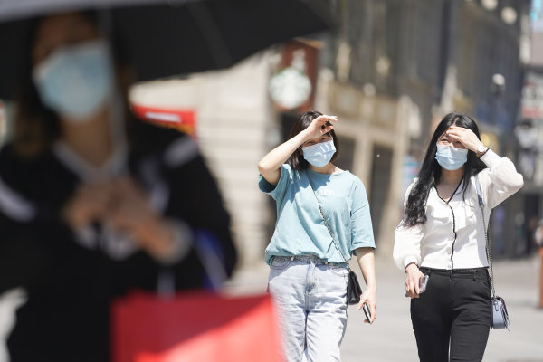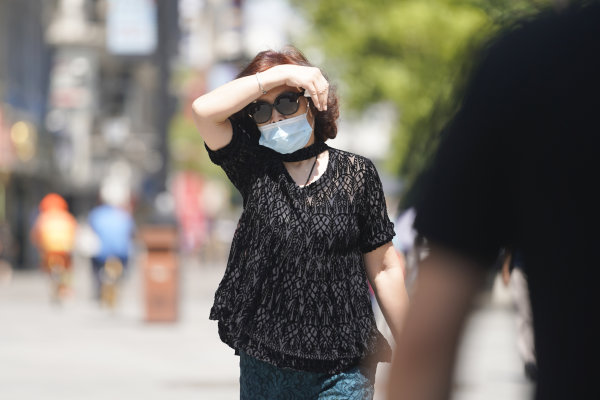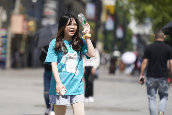 长江日报大武汉客户端5月6日讯 5月6日,武汉市最高气温攀升至31℃。走在江汉路步行街上的人们,墨镜、遮阳伞、防晒面罩……各种装备上阵,没有带遮阳伞的用手和矿泉水瓶遮阳。(长江日报记者彭年 摄影报道)