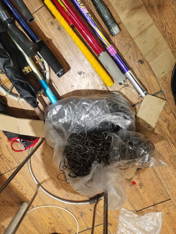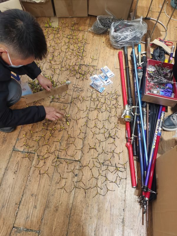 24日至28日,案件专班在网安、刑侦协助下,摸清查透上下游违法犯罪链条。27日,建港派出所抓获该案收购渔获的马某某、徐某。28日下午,长江大保护专班、龙王庙所会同市渔政、江汉区市场监管部门,对售卖“禁捕工具”的“锚天下”渔具店进行联合执法,当场查获、收缴禁用渔具锚杆11根、锚钩260个、锚胚子(锚钩半成品)6900只,老板周某因偷偷售卖非法捕捞渔具被行政处罚。