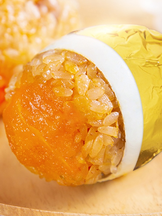 经过真空杀菌后,蛋壳外面用铝箔纸包裹,一颗集颜值和内涵于一体的“金蛋”便诞生了。食用前将“金蛋粽”带着真空包装在沸水中煮20分钟,从顶部开口处拨开铝箔纸,便能品尝到软糯咸香的“金蛋粽”了。不要拦我,写完这段我就想下单。