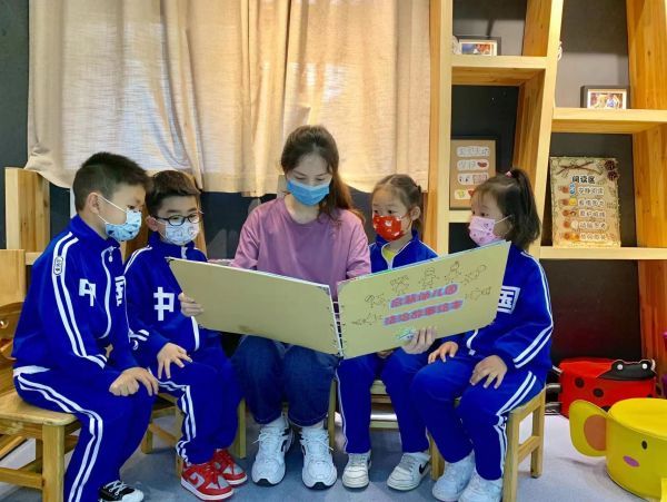 老师和孩子们一起看他们共同创作的绘本书。通讯员董诗晨 摄