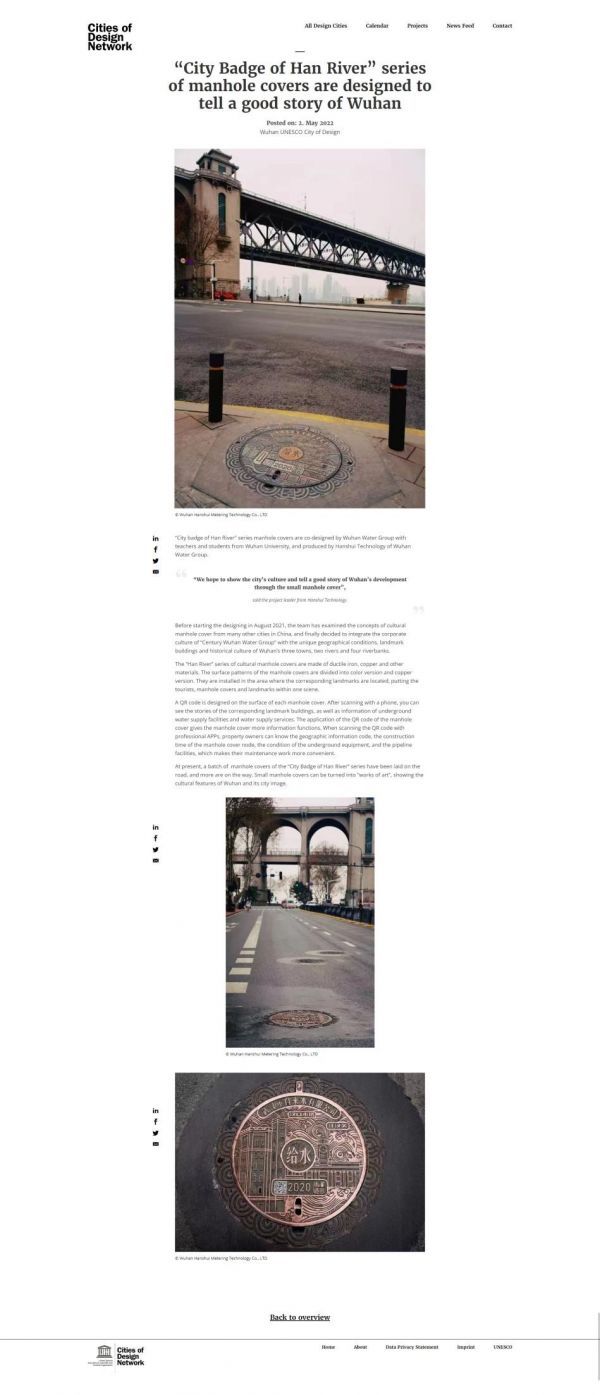 联合国教科文组织‘创意城市网络’网站聚焦汉水城文创井盖。