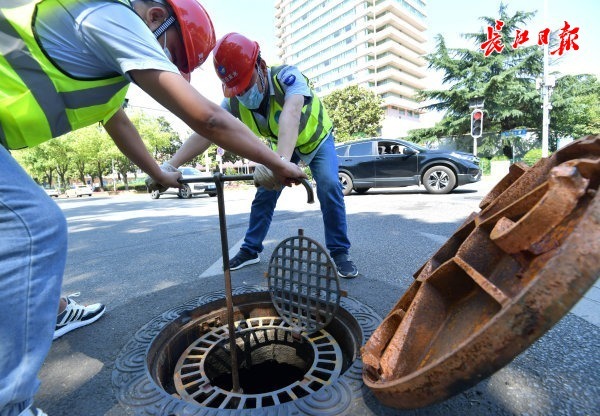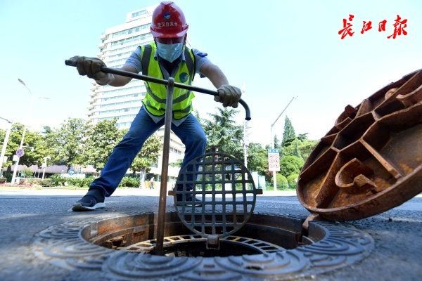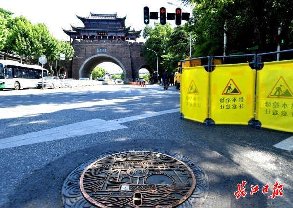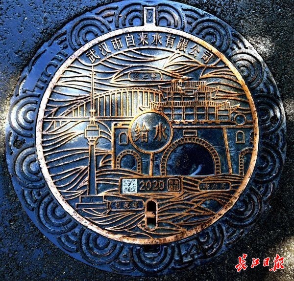 长江日报大武汉客户端5月7日讯 近日,汉阳晴川阁下,武汉市自来水有限公司施工人员正在对井盖内的闸门进行维护,不少市民围在附近对着施工井盖拍照留念。长江日报记者走近发现,原来,自今年2月首批“汉水的城市徽章”系列井盖在武昌彭刘杨路、临江大道、昙华林,汉口中山大道、沿江大道等路段铺设后,此次汉阳区装上了以晴川阁及龟山电视塔为图案的“新品”井盖。