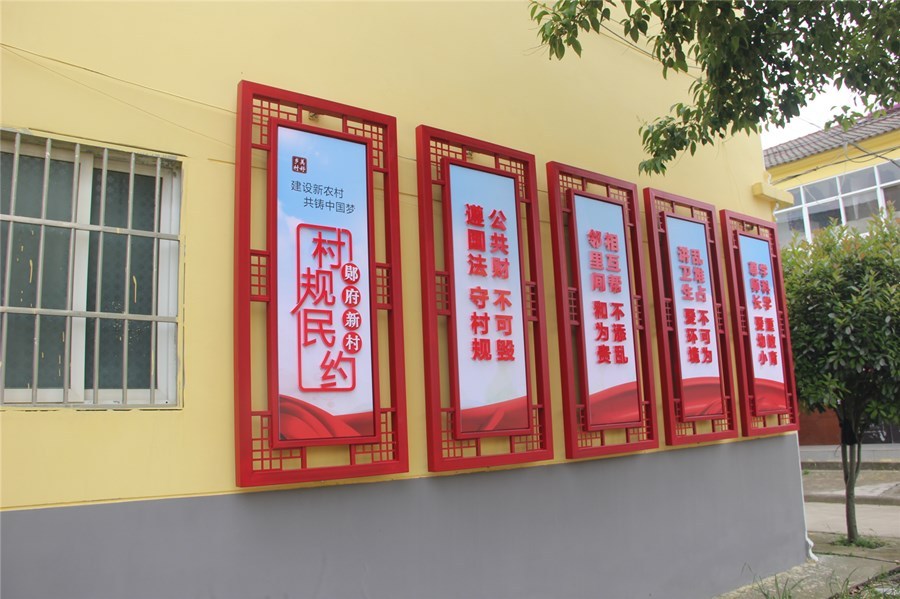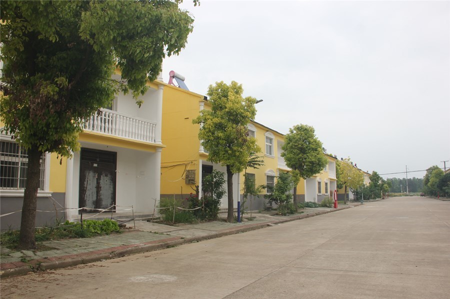 沿着宽阔整洁的道路,来到郧府新村,一棵棵绿化树分立在村道两旁,一片片绿油油的树叶掩映着村庄。