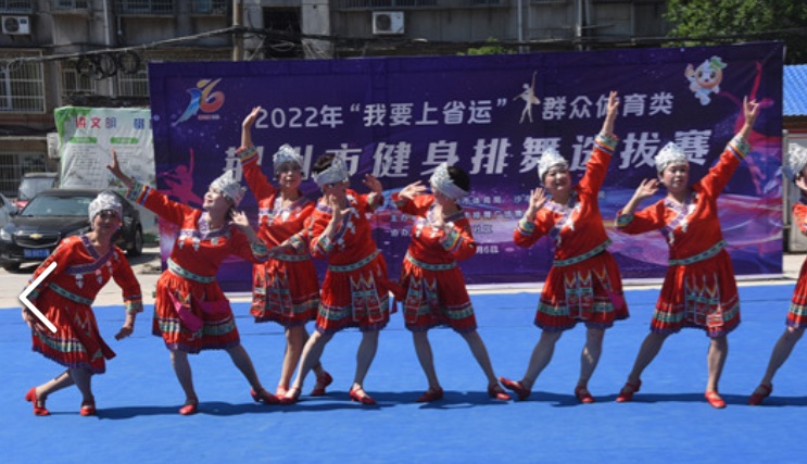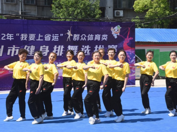 5月6日,2022年“我要上省运”群众体育类荆州市健身排舞选拔赛,在沙市区胜利街道石闸门社区健身广场举行。我市10个健身排舞代表队的180人参与此次选拔。