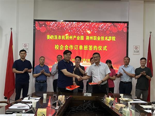 7日下午,在市人力资源和社会保障局、荆州开发区人社服务中心牵线搭桥下,美的洗衣机荆州产业园与荆州职业技术学院正式签订协议,打造校企合作“订单班”,携手促进更多优秀学子留荆就业创业。