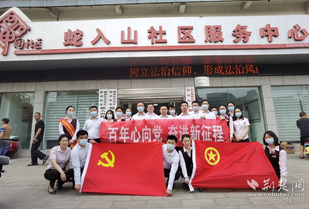 荆楚网(湖北日报网)讯(通讯员蔡佳)百年青春奋斗,百年梦想追求。一百年来,在中国共产党的旗帜下,一代代中国青年把青春奋斗融入党和人民的事业,成为实现中华民族伟大复兴的先锋力量。在中国特色社会主义新时代,青年们不忘初心、砥砺奋进。为庆祝建团100周年和迎接党的二十大召开,在五四青年节之际,招商银行荆州分行党委组织下辖支部党员、青年团员以党带群团方式,走进沙市区社区党建工作示范社区-沙市区胜利街道蛇入山社区开展“百年心向党奋进新征程”青年志愿之社区志愿助老活动。