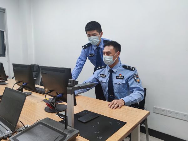 民警对模糊的车牌号进行“推导分析”排列组合逐一排查。通讯员唐时杰 摄