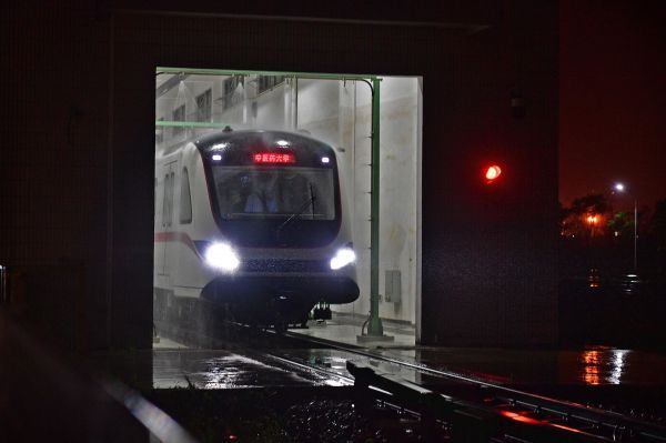 据了解,5号线列车的洗车过程全自动化,无需人工现场操作,由于列车行经路线设置为“无人区”,入库和出库过程无需司机停车现场确认,洗车整个过程与其他线路相比要节约3分钟时间。