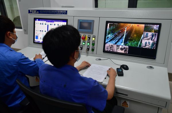 与此同时,操作员喻强正在操作台确认洗车设备状态正常,将洗车手动模式旋转至自动,等待列车进入洗车库。