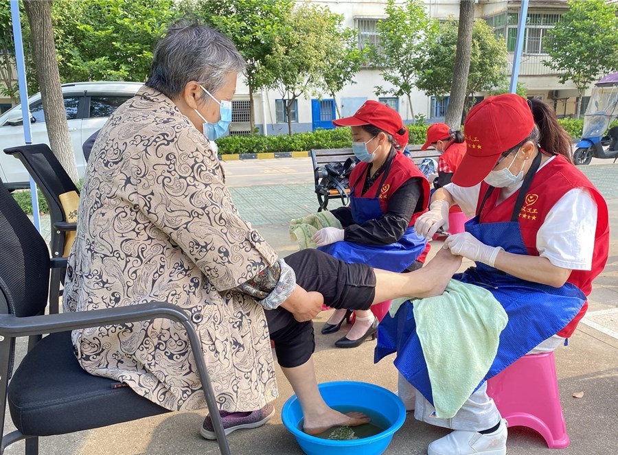 记者在活动现场看到,这里设立了理发区、采耳区、量血压区、修脚区,志愿者和物业工作人员在各个爱心服务台引导居民有序排队,一边服务一边与老人亲切交谈。